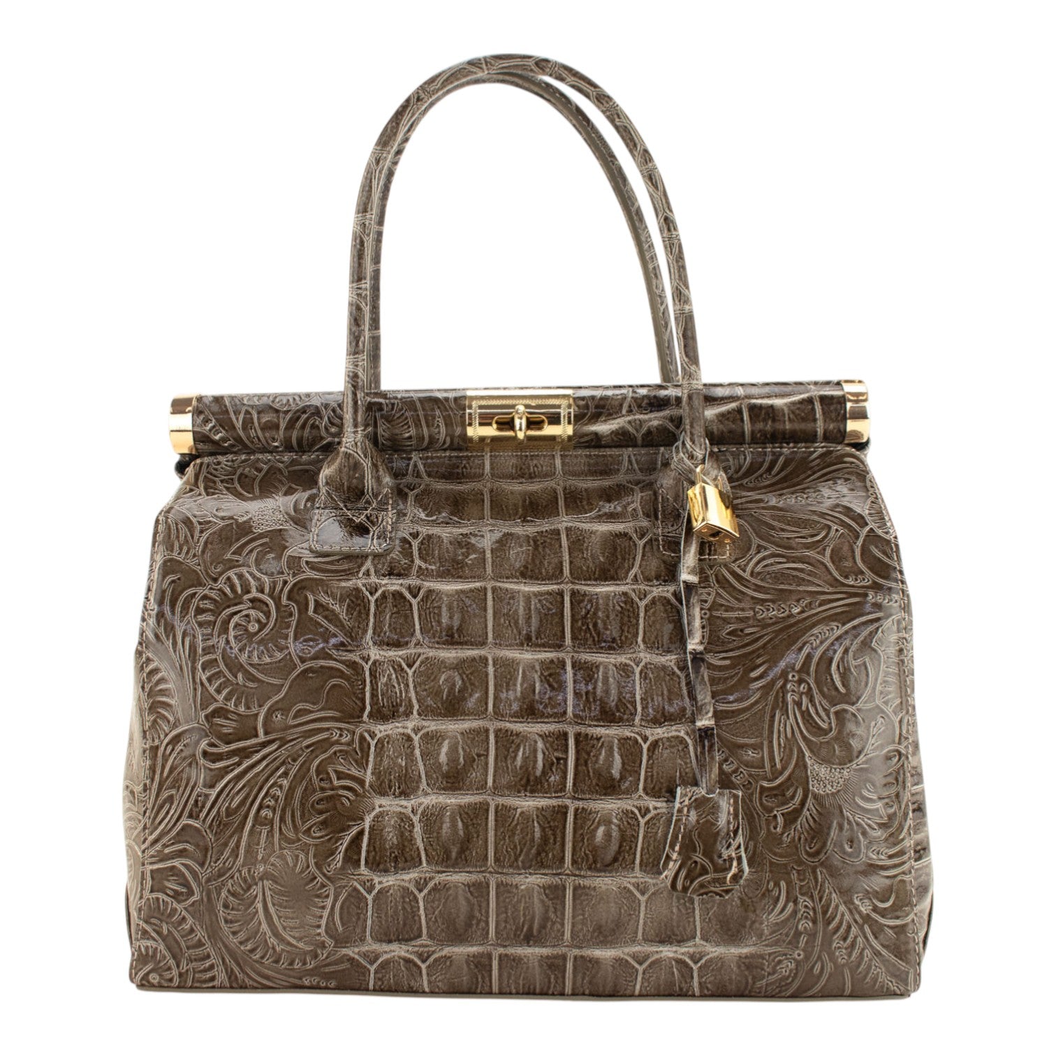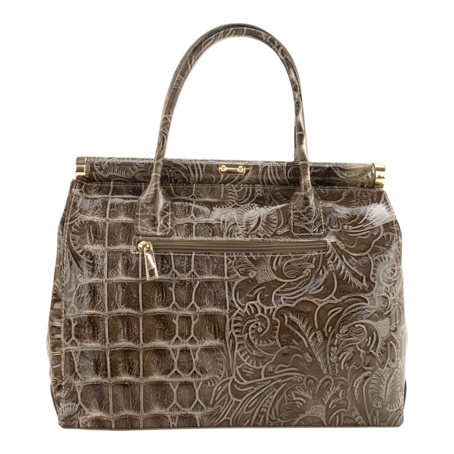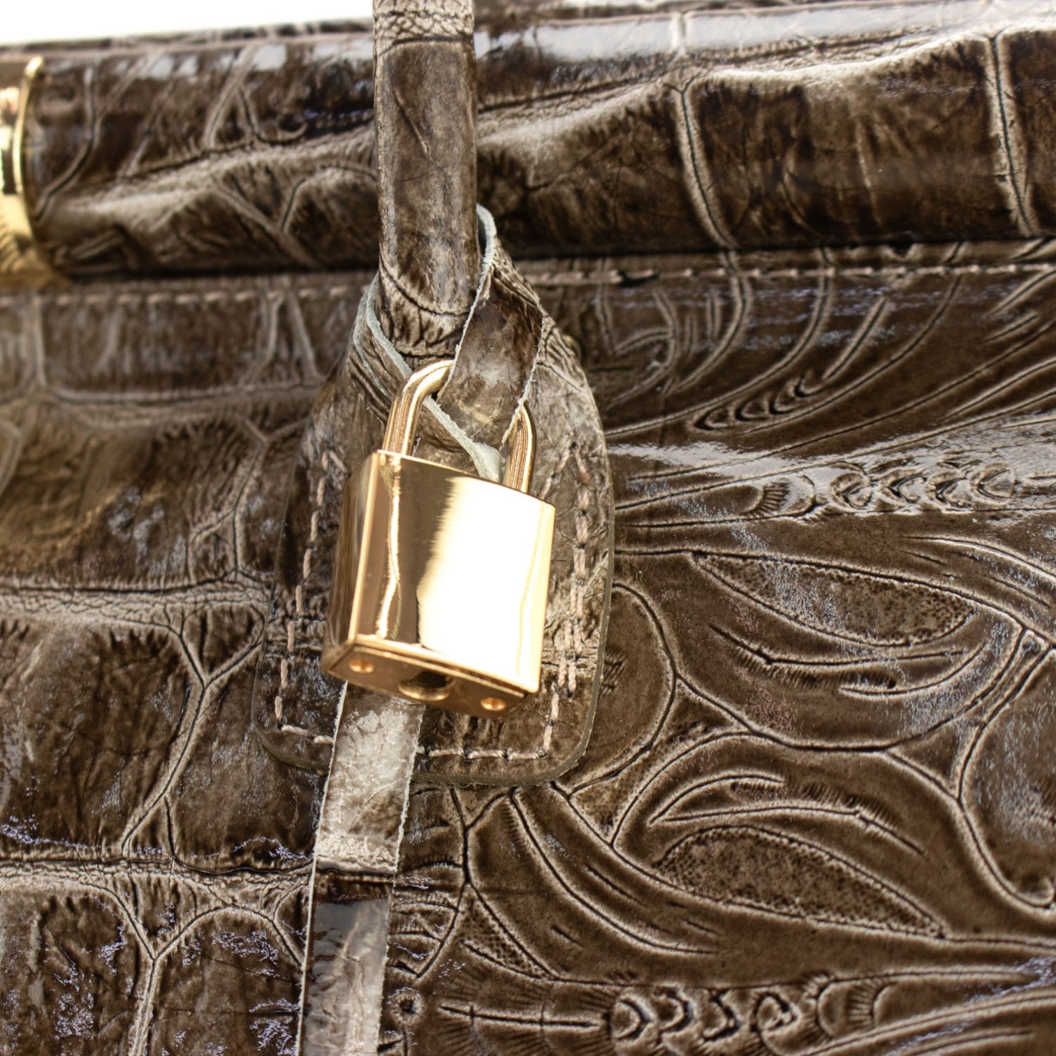 Bolso de mano en Piel Pregato Classic Special Croc Floral Taupe