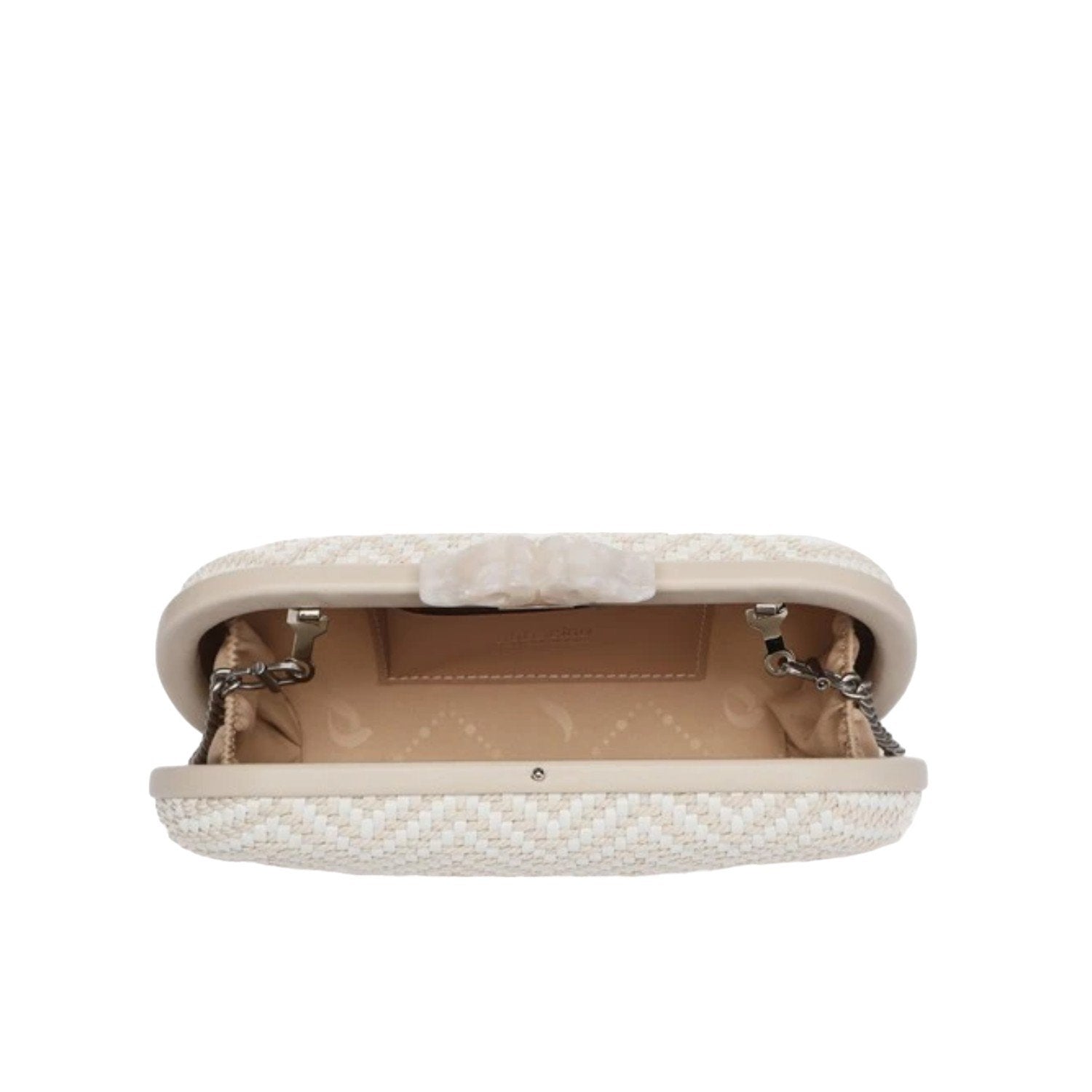 Wunderschönes Handtaschenmodell, ideal für Veranstaltungen, mit ovaler Form, 3D-Verschluss, geometrischem Aufdruck, zusätzlichem Kettenriemen zum Tragen als Hänge- oder Umhängetasche und perfekt für jeden besonderen Anlass.