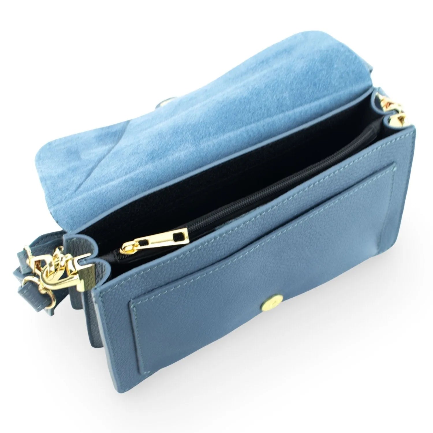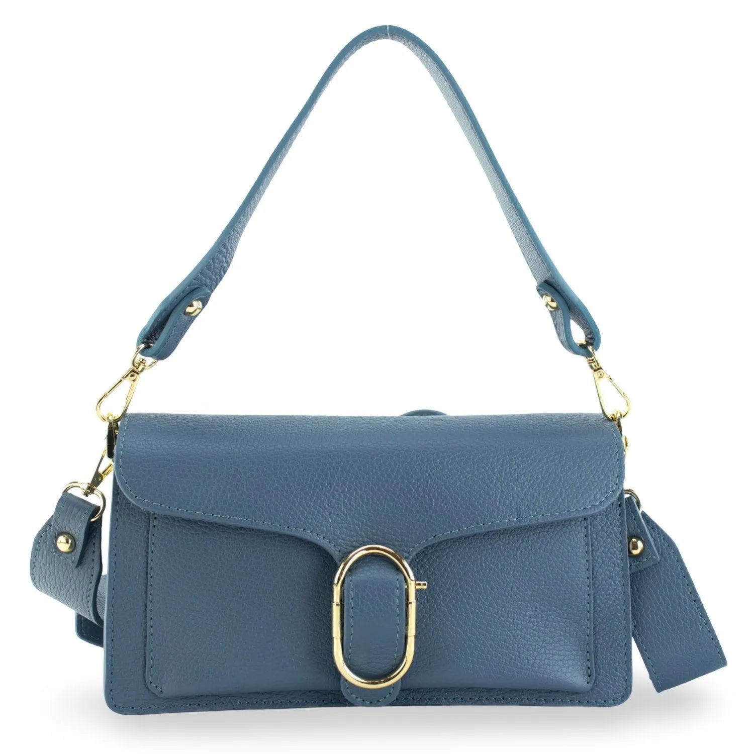 A very original shoulder bag to wear every day, made of 100% genuine Italian cowhide leather, this shoulder bag is made in Italy with excellent manufacturing and quality, it has a very original gold-tone metal clasp closure, with an interior zipper closure, with a Beautiful adjustable shoulder strap to wear crossbody or on the shoulder.