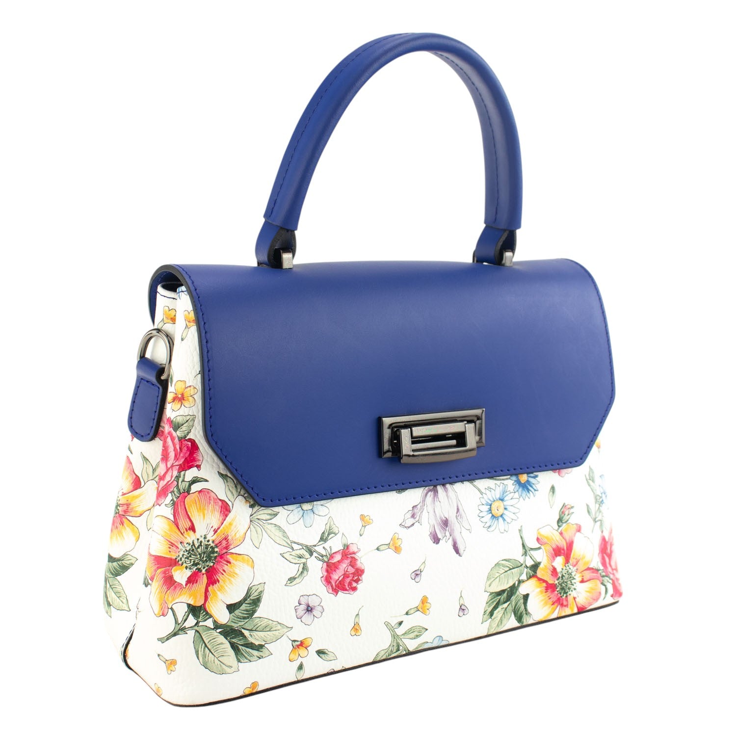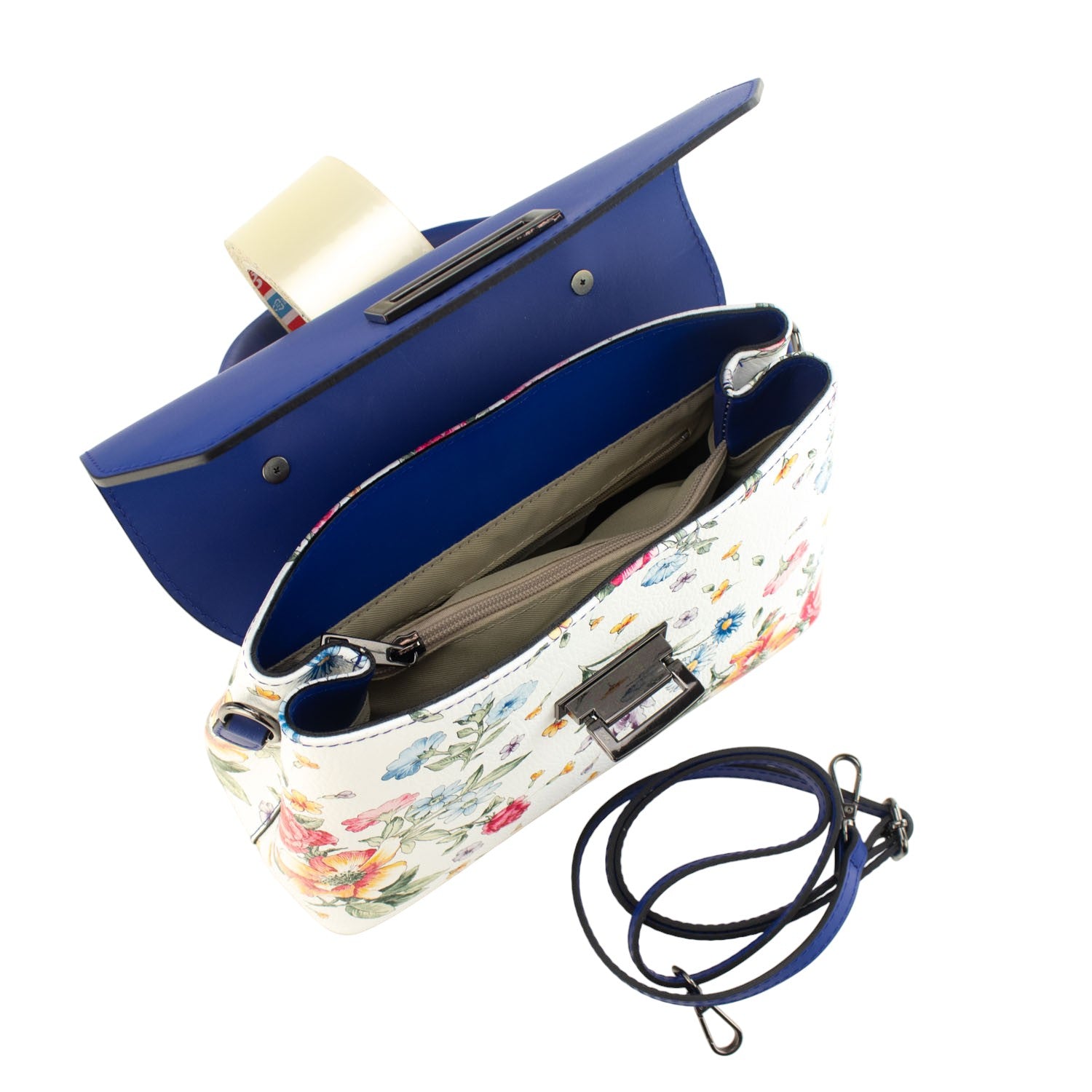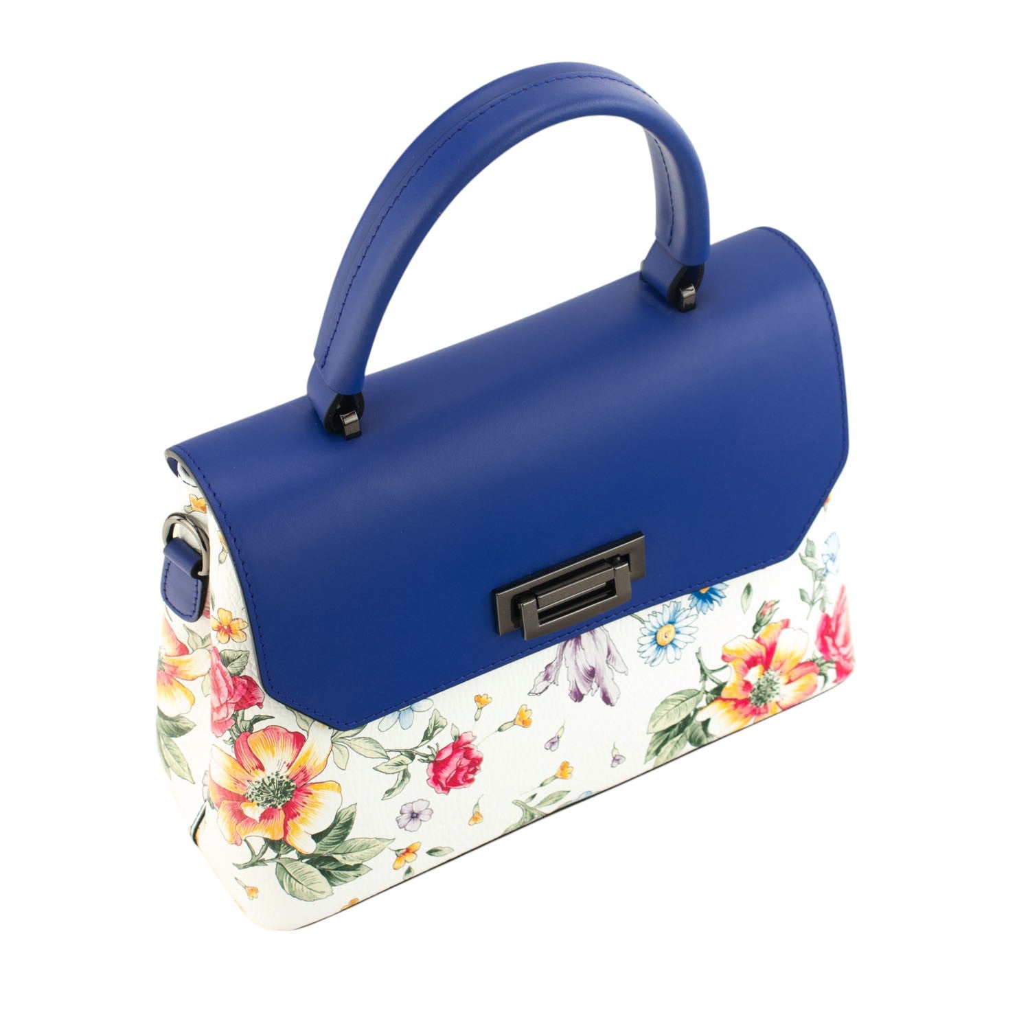 Bolso con solapa en piel Pregato Passione Azul Floral