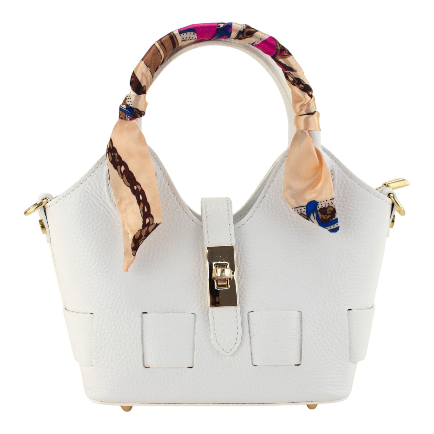 Su diseño compacto pero espacioso lo convierte en el aliado perfecto tanto para ocasiones especiales como para un uso diario. Incorpora doble sistema de cierre —broche y cremallera— que garantiza seguridad sin renunciar al estilo. Además, incluye un pañuelo decorativo que aporta un detalle distintivo y femenino.