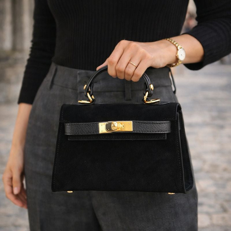 Bolso en Piel Pregato mini Latenza Ante Negro - KimondoShop