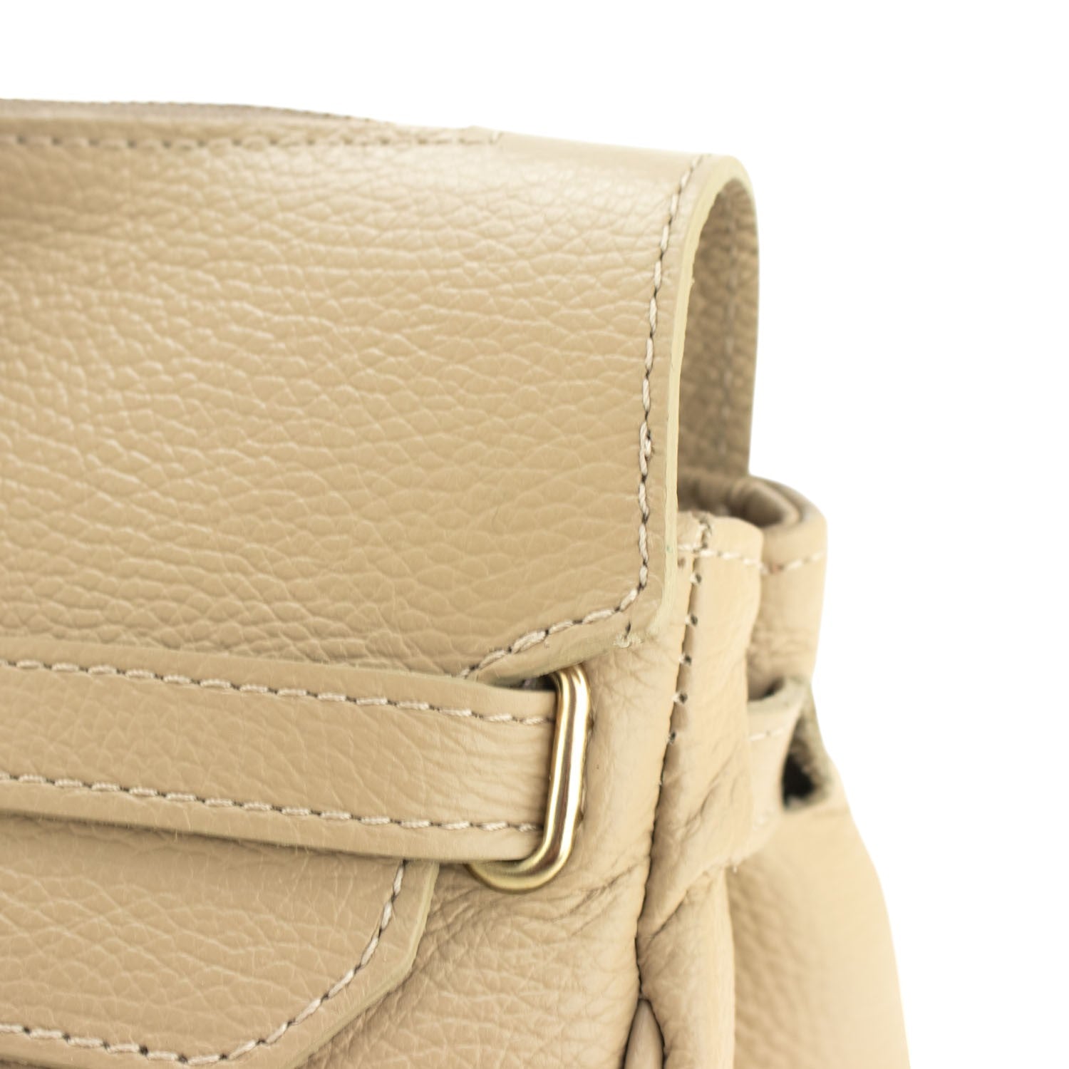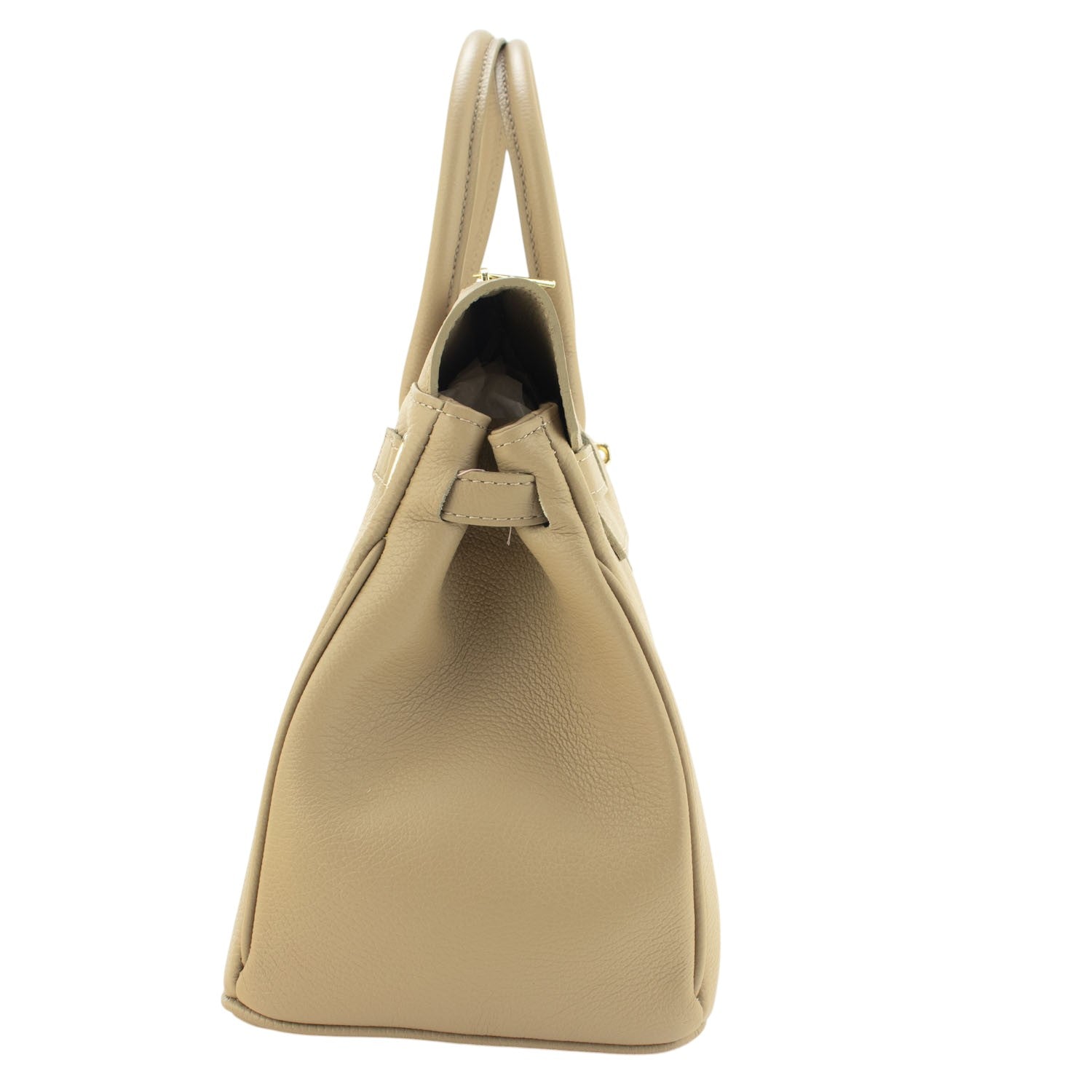 Un bolso muy original para lucir a diario, realizado en Piel 100% genuina vacuno italiana, este bolso está hecho en Italia con una excelente manufactura y calidad, tiene un compartimento interior amplio y cierre de broche además de un cierre superior con cremallera para facilitar el acceso al compartimento principal. Dispone de cómodas asas para llevar de mano.
