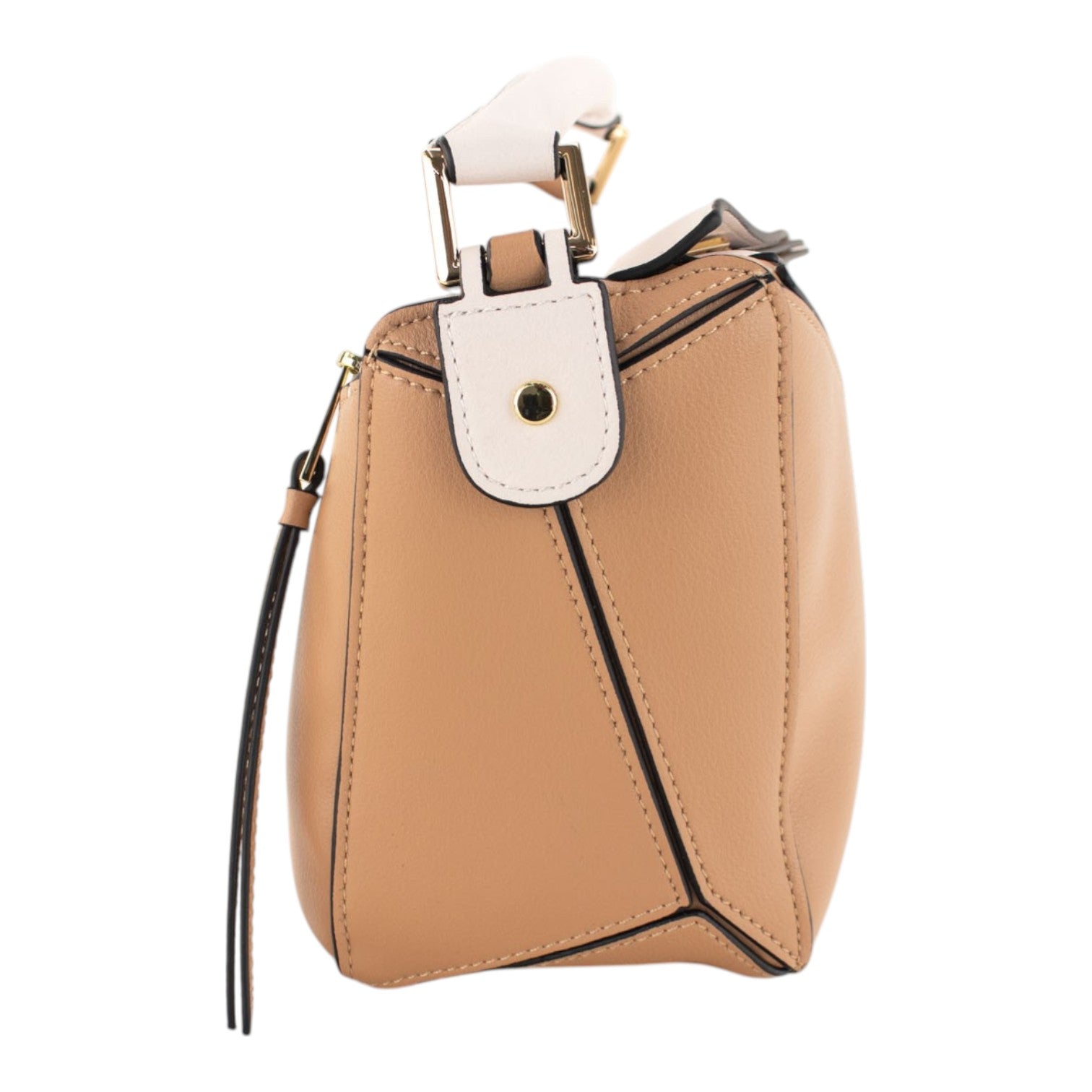 Bolso de Piel Pregato Modena Camel Blanco Bicolor