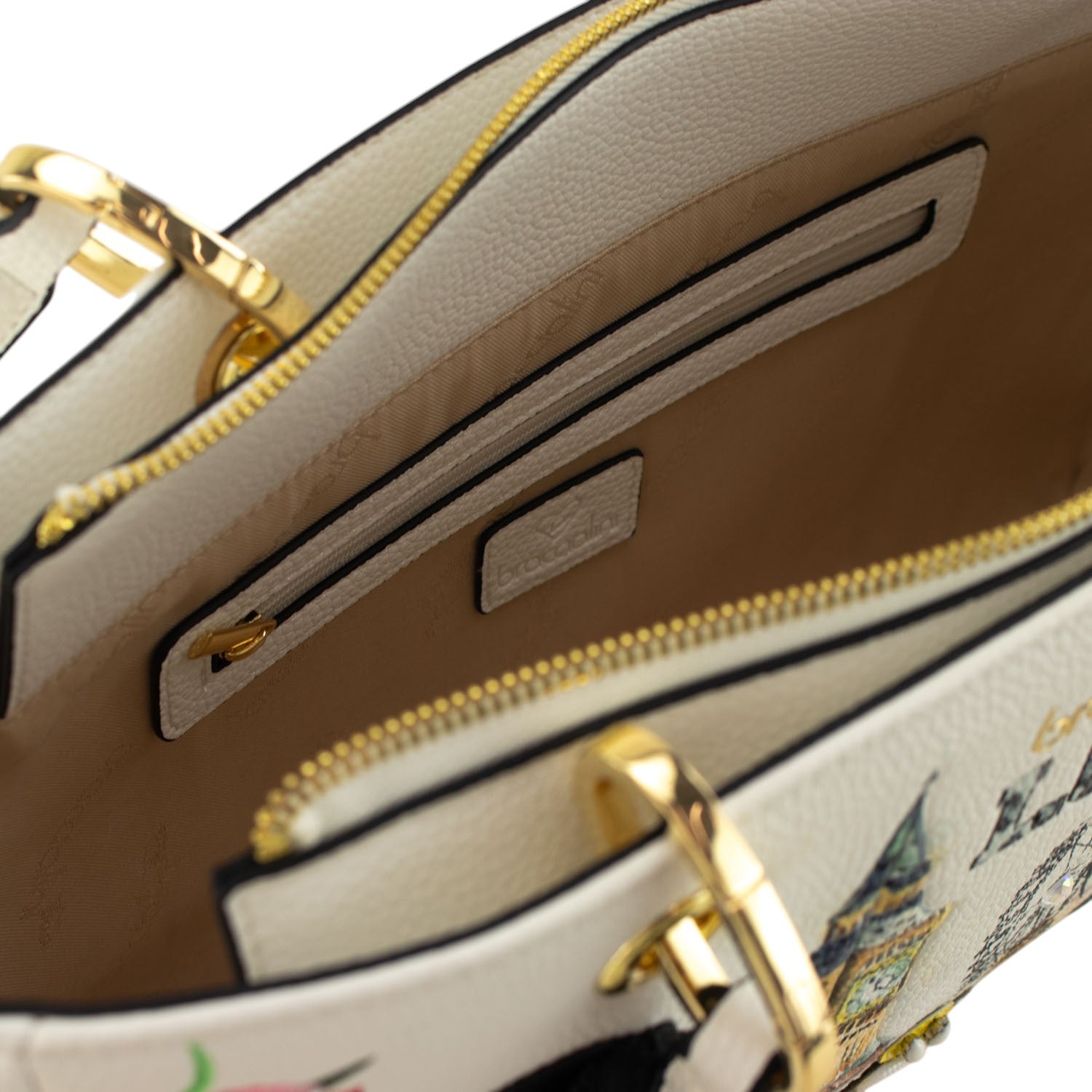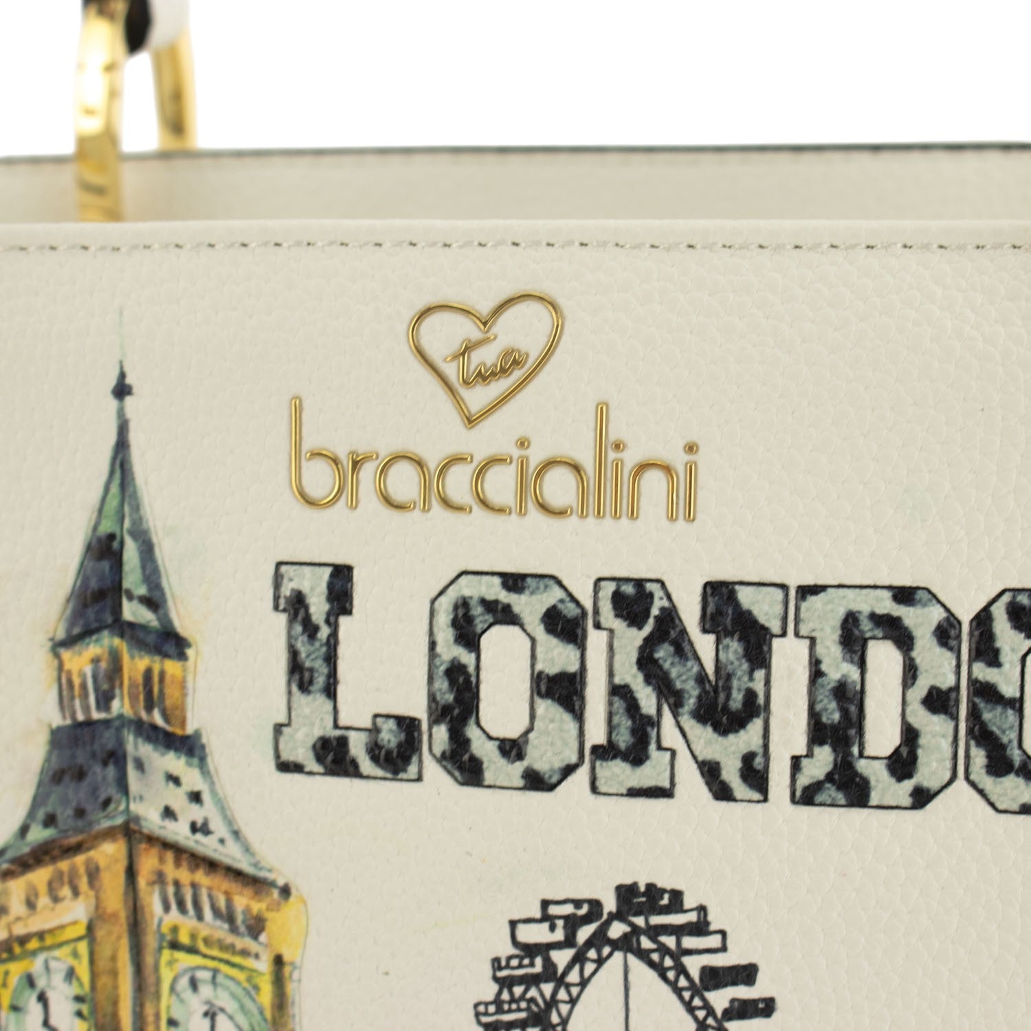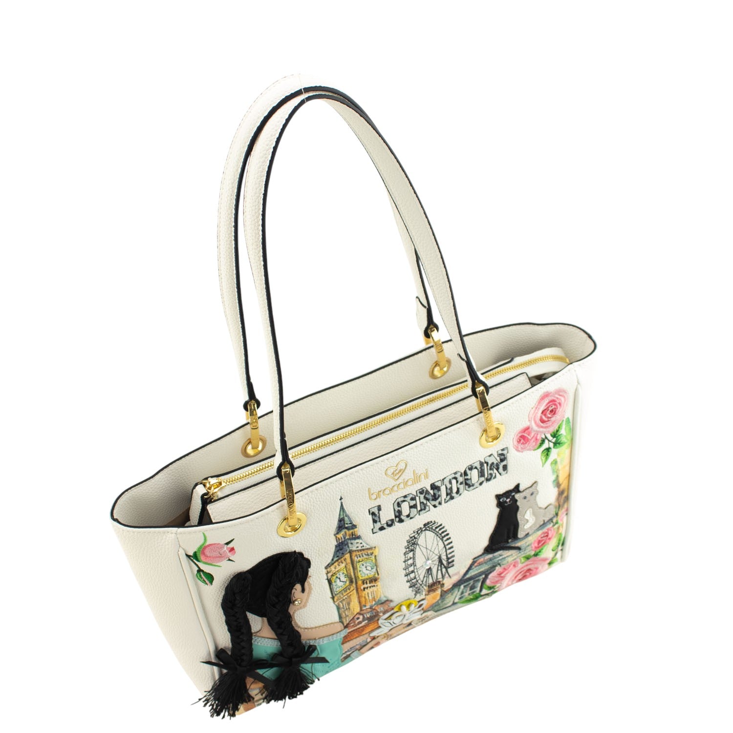 Braccialini nos sorprende con una nueva Colección inspirada en ciudades del mundo. En este modelo de Bolso Shopper Braccialini Cartoline London podrás ver representada una historia de la ciudad de Londres, es un bolso con doble asa larga para llevar al hombro, cierre de cremallera y bolsillo interior