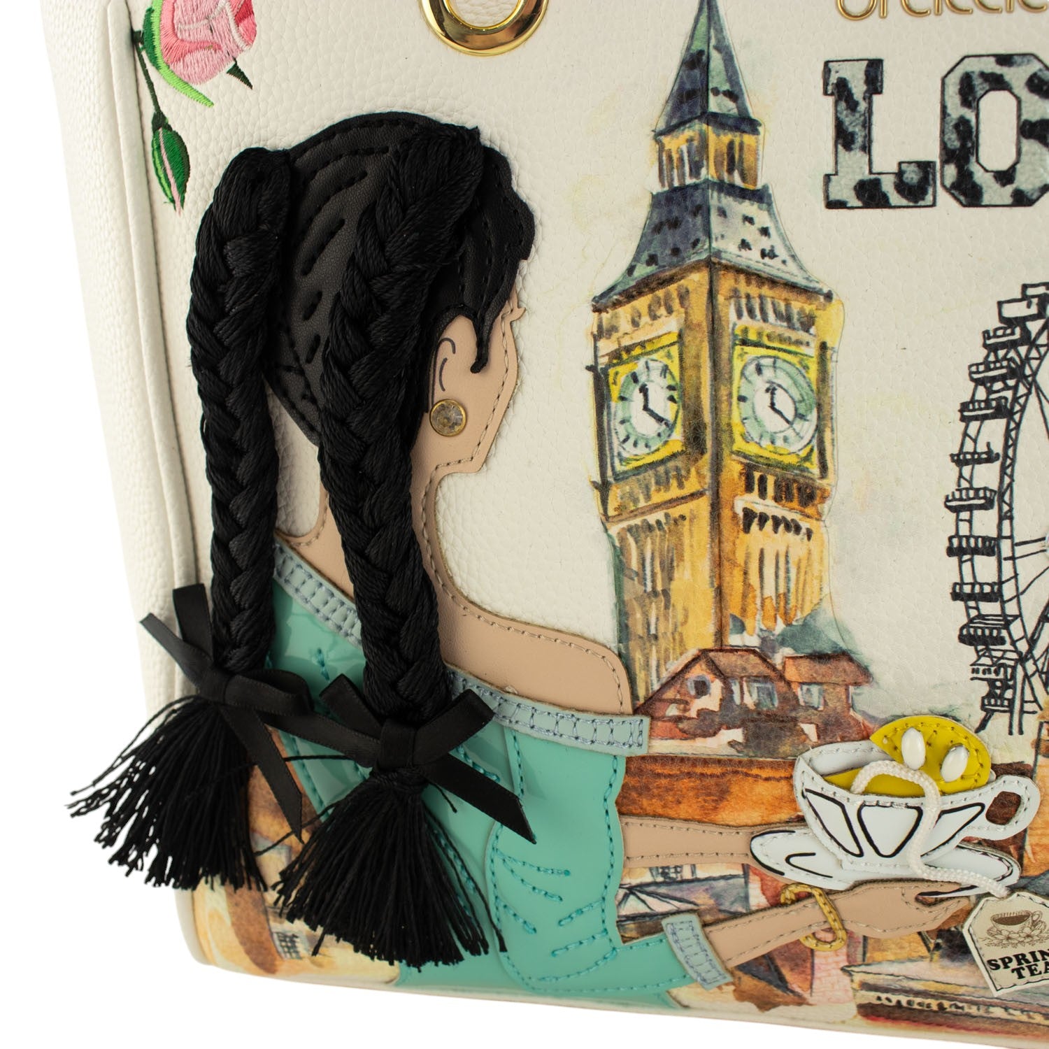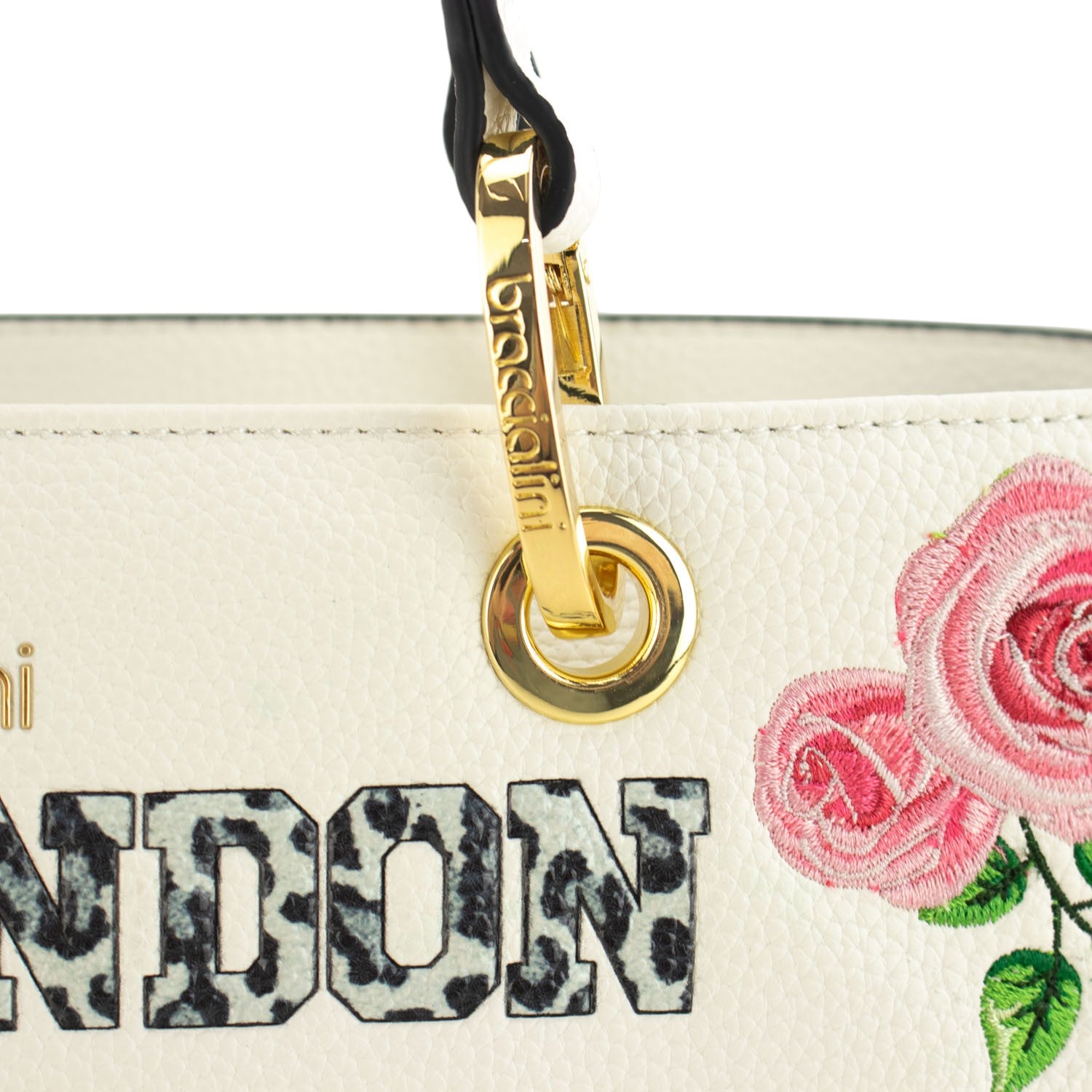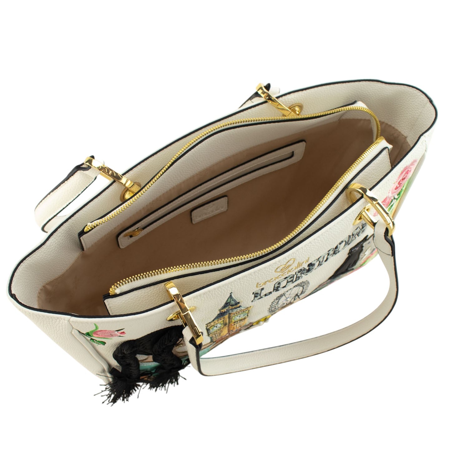 Braccialini nos sorprende con una nueva Colección inspirada en ciudades del mundo. En este modelo de Bolso Shopper Braccialini Cartoline London podrás ver representada una historia de la ciudad de Londres, es un bolso con doble asa larga para llevar al hombro, cierre de cremallera y bolsillo interior