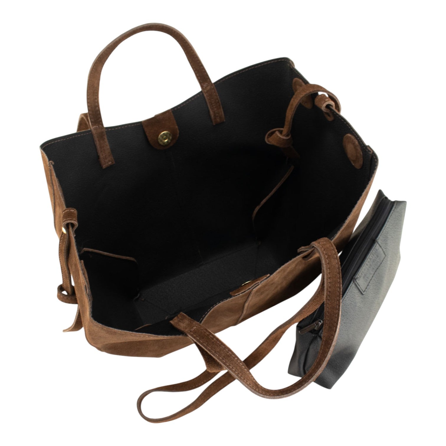 Un bolso muy original para lucir a diario, realizado en Piel 100% genuina vacuno italiana, este bolso está hecho en Italia con una excelente manufactura y calidad, tiene un compartimento interior amplio y permite ampliarse gracias a sus imanes laterales, siendo muy cómodo tanto como bolso de mano así como shopper con sus asas largas.