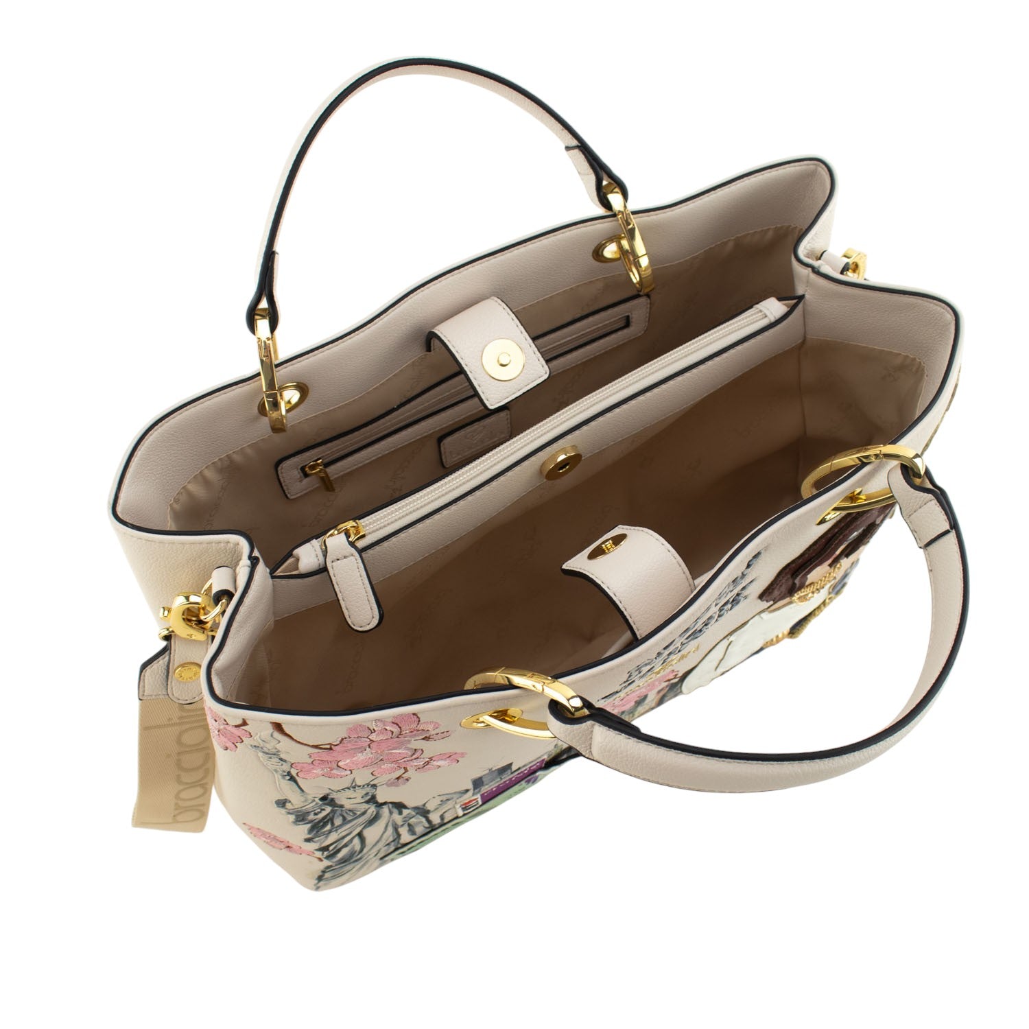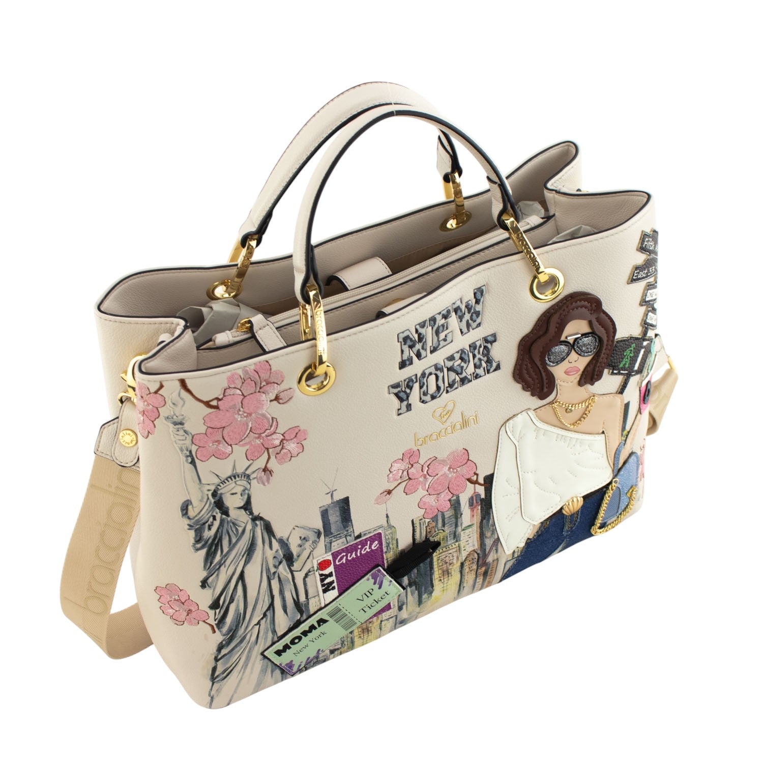 Braccialini nos sorprende con una nueva Colección inspirada en ciudades del mundo. En este modelo de Bolso tote Braccialini Cartoline New York podrás ver representada una historia de la gran manzana. Este bolso de buena capacidad viene con doble asa para llevar de mano y cinta de bandolera, compartimento central con cremallera para organizar.