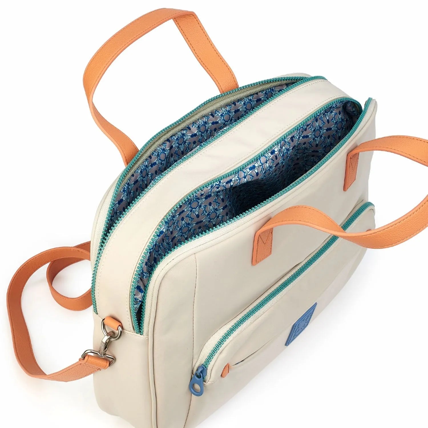 Une mallette parfaite au quotidien avec doubles poignées et bandoulière réglable, avec un grand compartiment intérieur avec fermeture éclair et poche avant. Finition extérieure dans des tons doux, vous allez adorer!