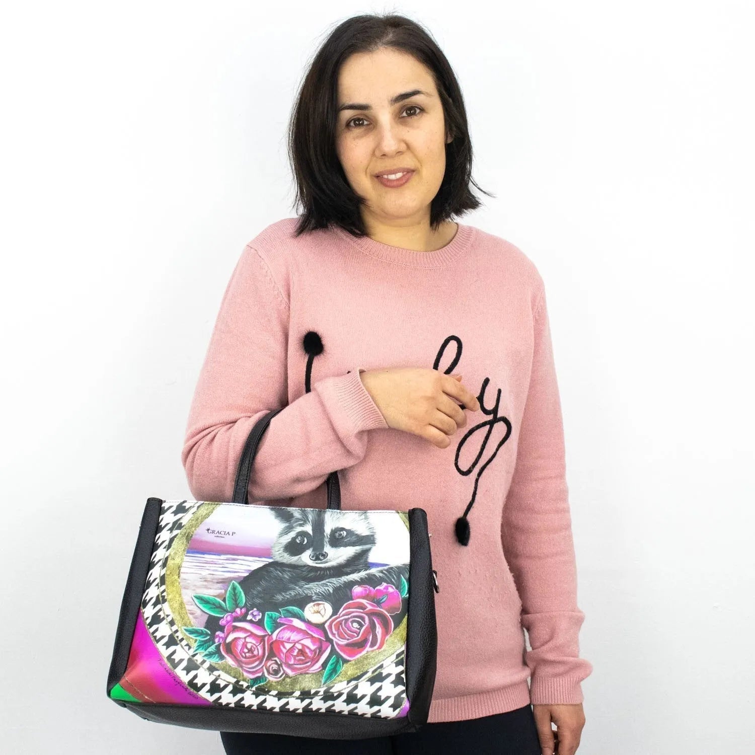 Un bolso muy original que te impresionará por sus acabados de alta calidad ya que está manufacturado y diseñado artesanalmente en Italia. Dispone de un compartimento interior amplio con cierre de cremallera y bolsillos adicionales. Doble asa de mano y cinta de bandolera adicional ajustable para que puedas lucirlo como más te guste.