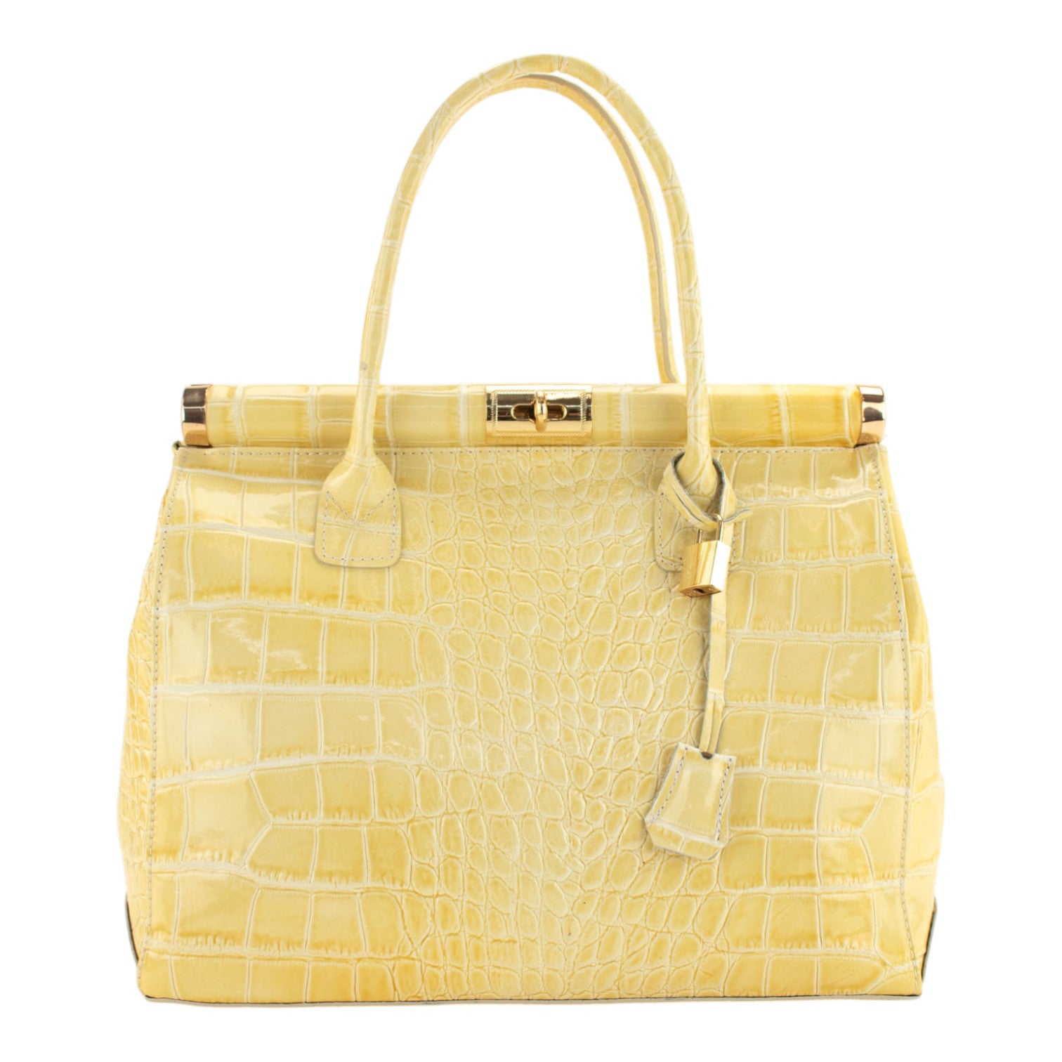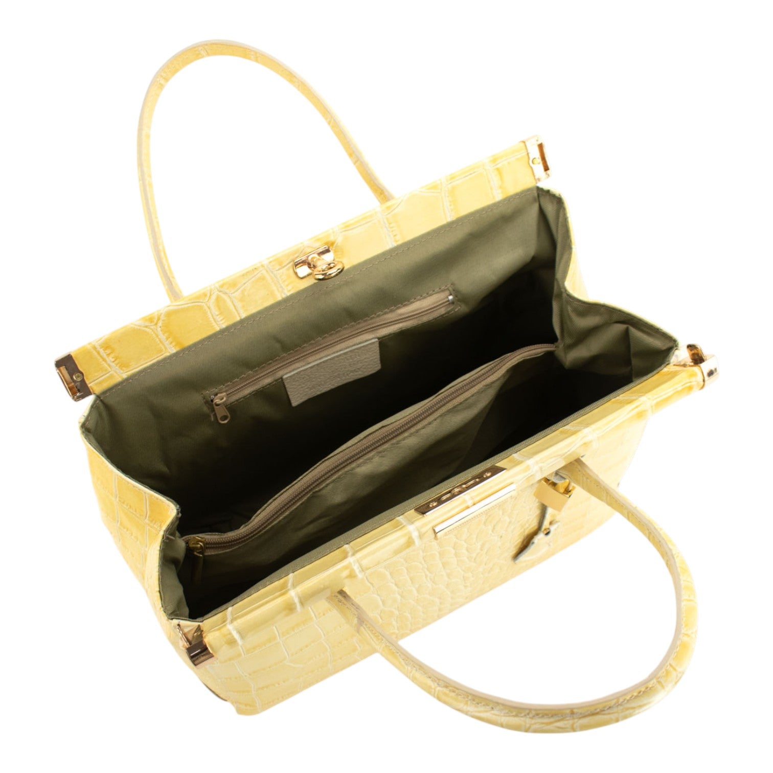 Bolso de mano en Piel Pregato Classic Special Croc Floral Amarillo mantequilla