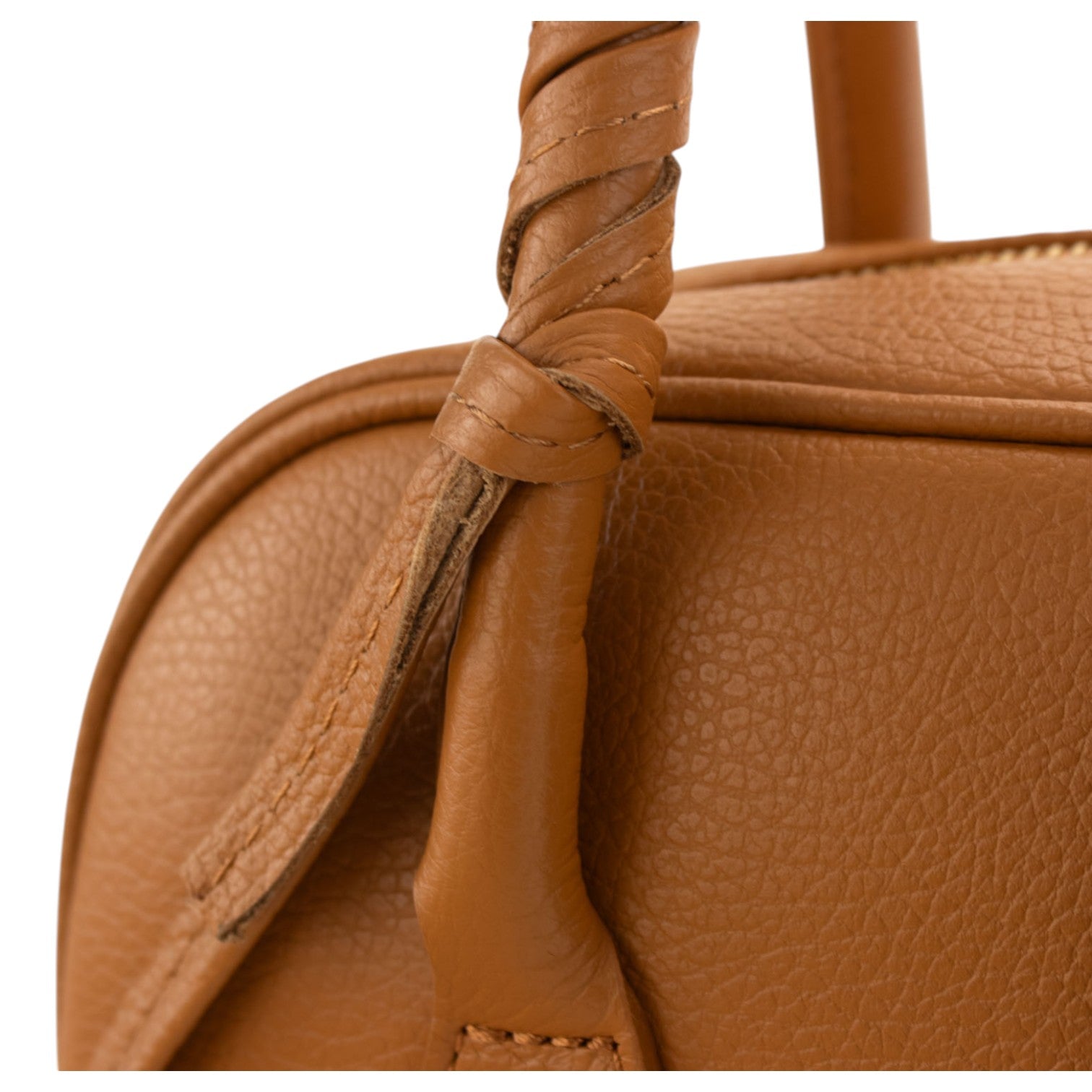 El cierre superior con cremallera mantiene tus pertenencias seguras, mientras que las tachuelas metálicas en la base protegen el bolso del contacto directo con las superficies, ayudando a conservarlo en perfecto estado.