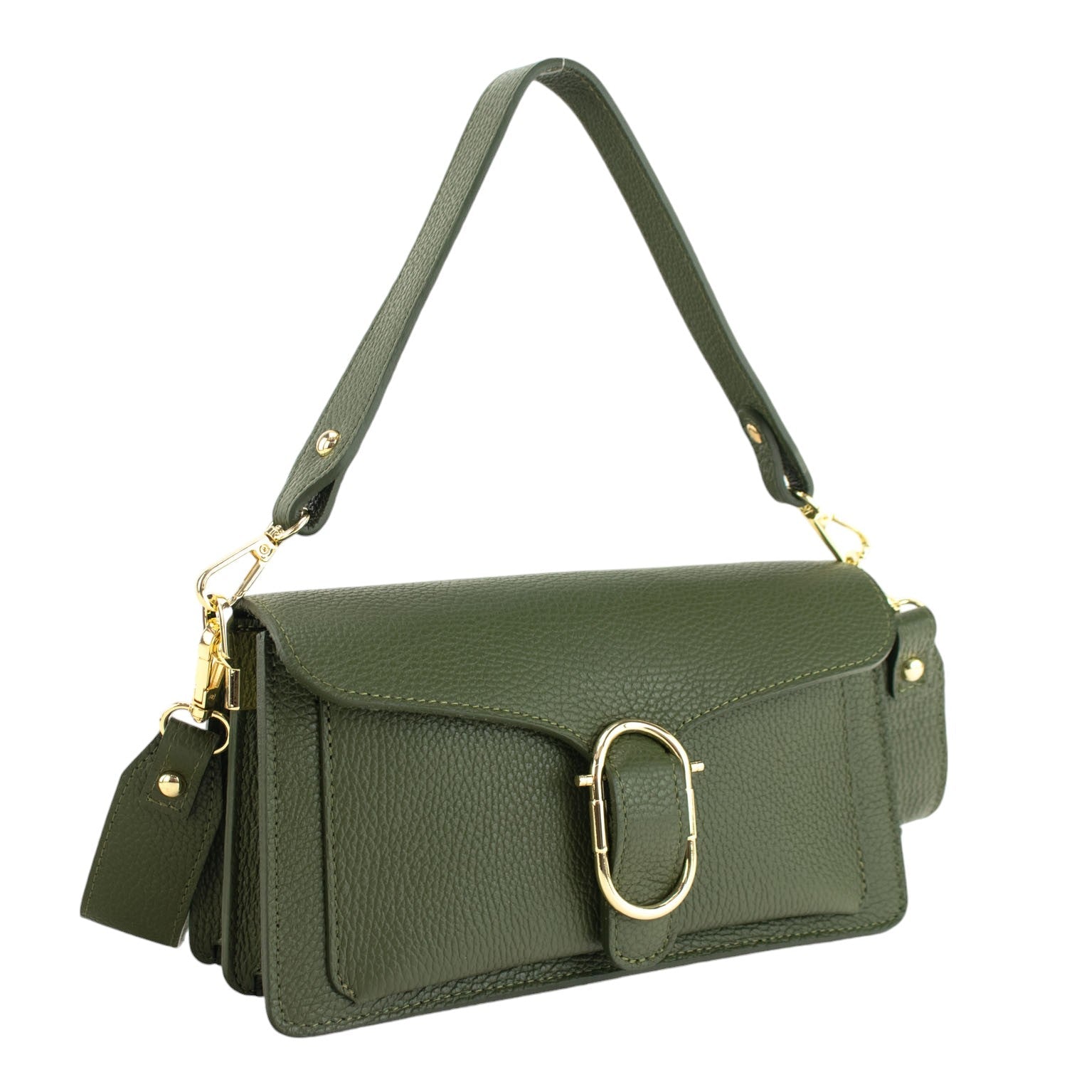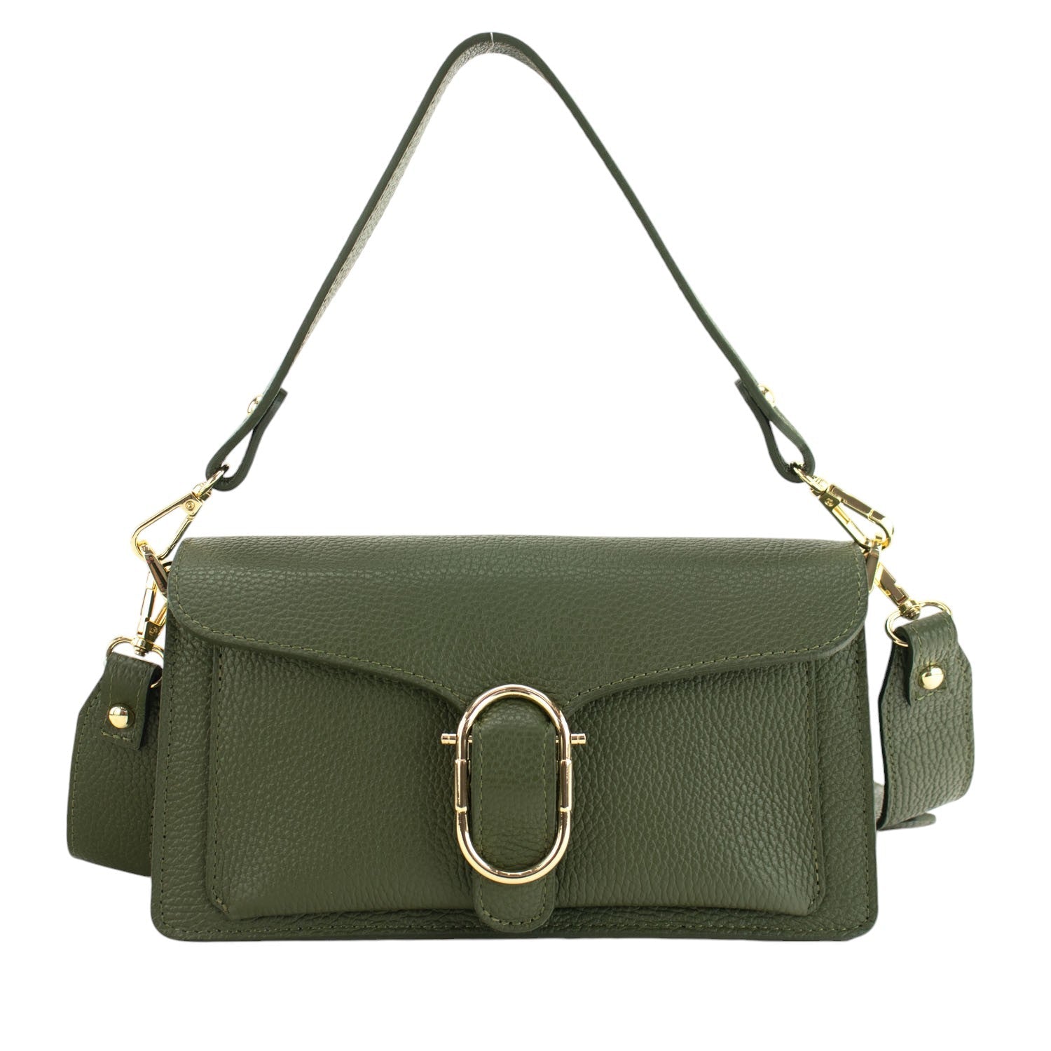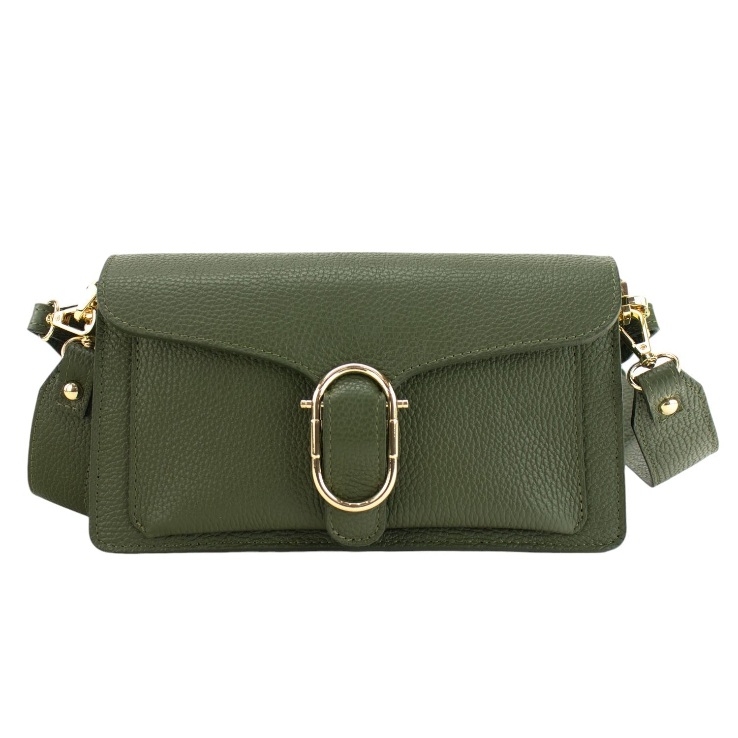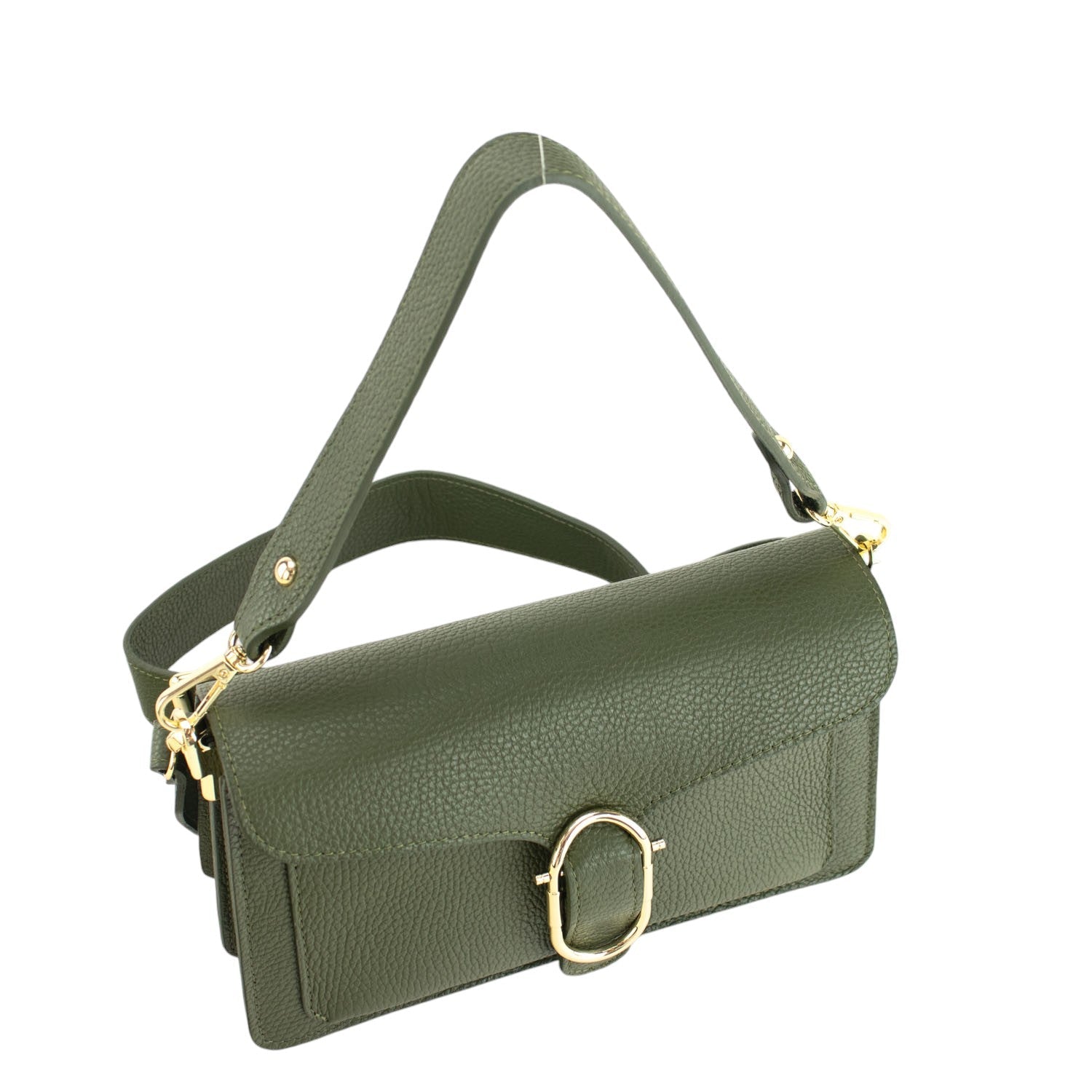 Bandolera Piel Pregato Fíbula Verde oliva