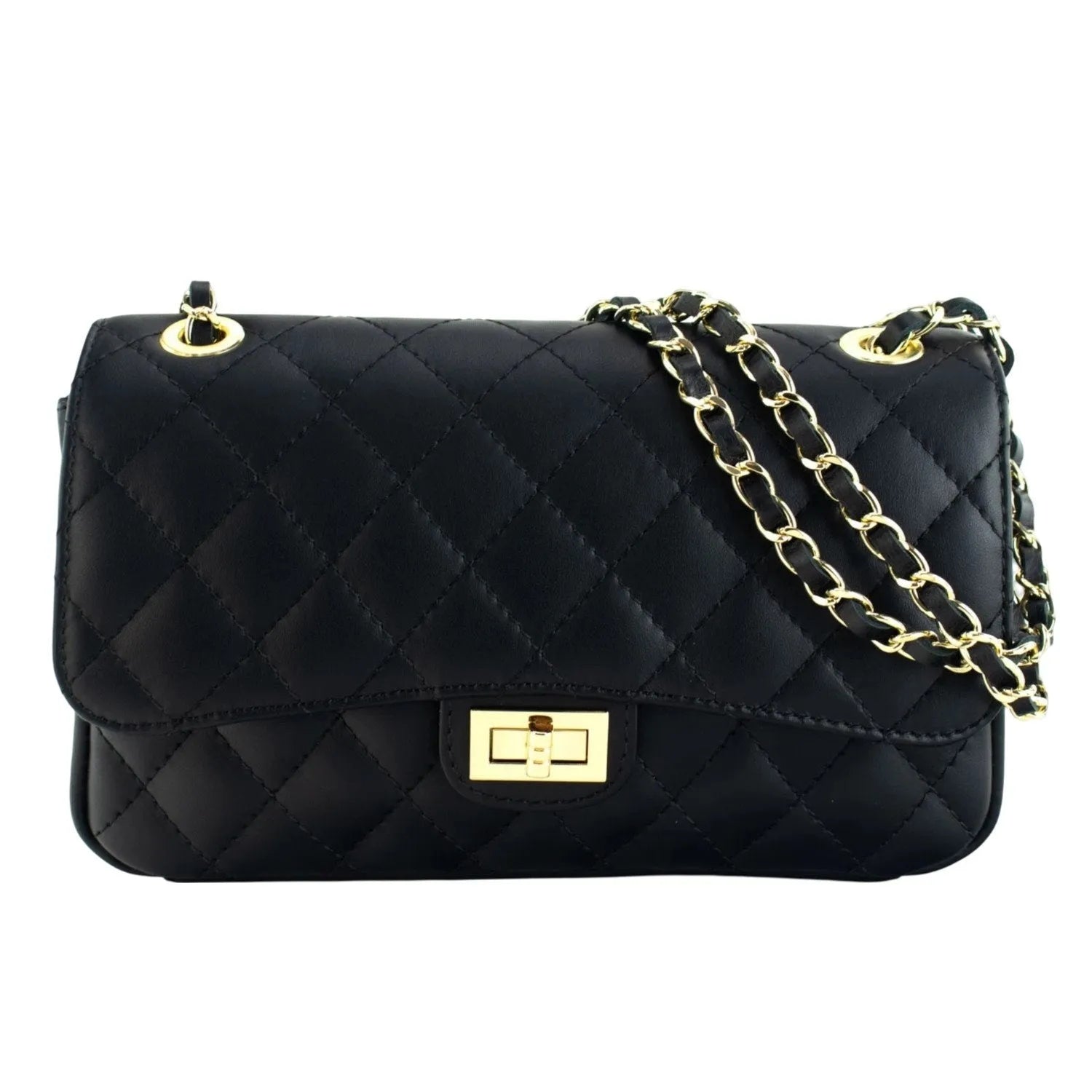 Uma bolsa super original para usar no dia a dia, confeccionada em couro bovino italiano 100% genuíno, esta bolsa é fabricada na Itália com excelente fabricação e qualidade, possui fecho metálico dourado muito original, com uma linda fita de corrente em tons dourados para usar na transversal ou no ombro.