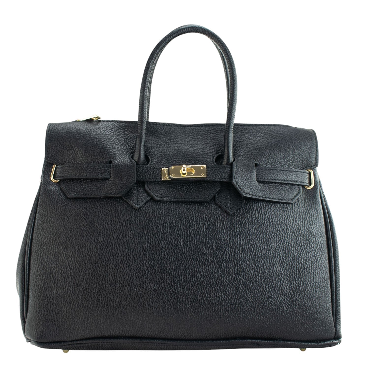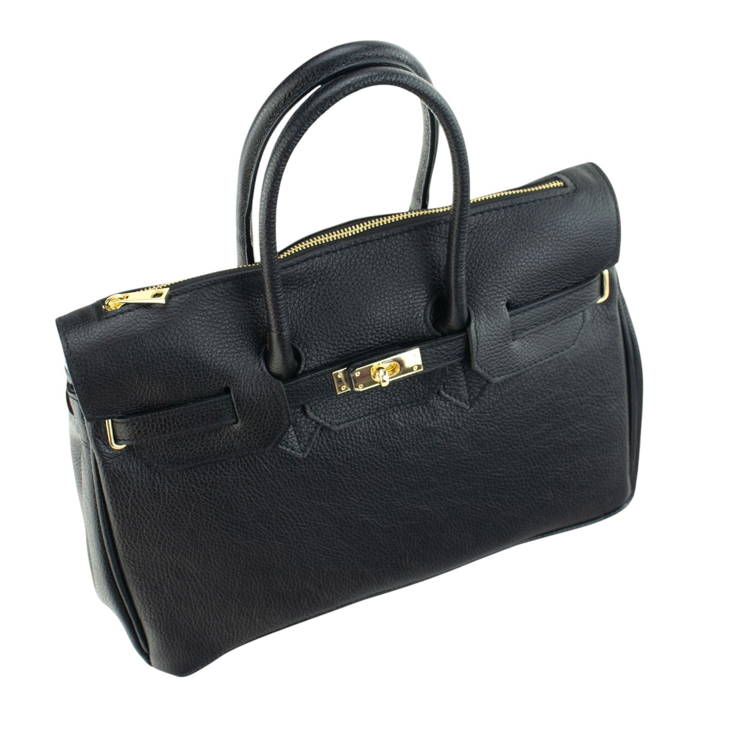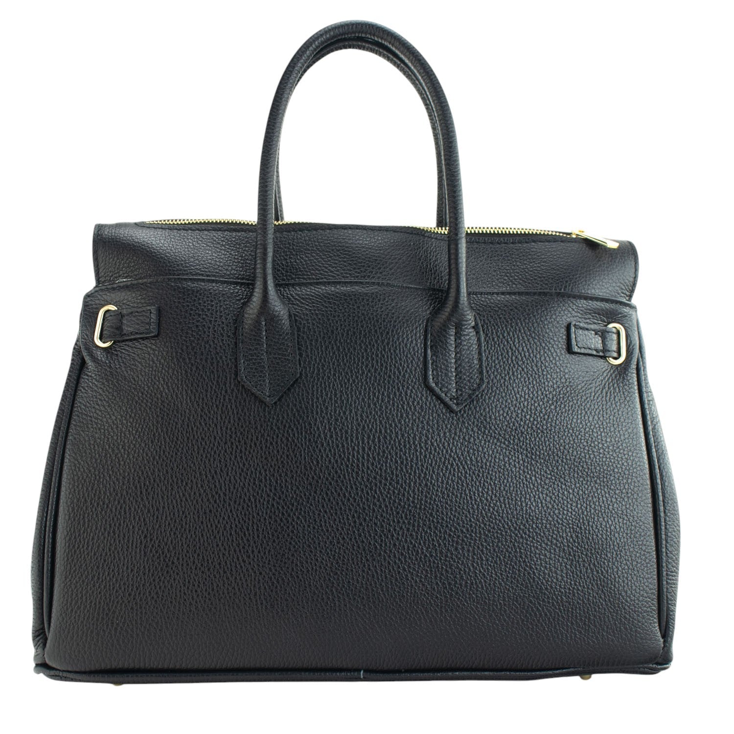 Un bolso muy original para lucir a diario, realizado en Piel 100% genuina vacuno italiana, este bolso está hecho en Italia con una excelente manufactura y calidad, tiene un compartimento interior amplio y cierre de broche además de un cierre superior con cremallera para facilitar el acceso al compartimento principal. Dispone de cómodas asas para llevar de mano.