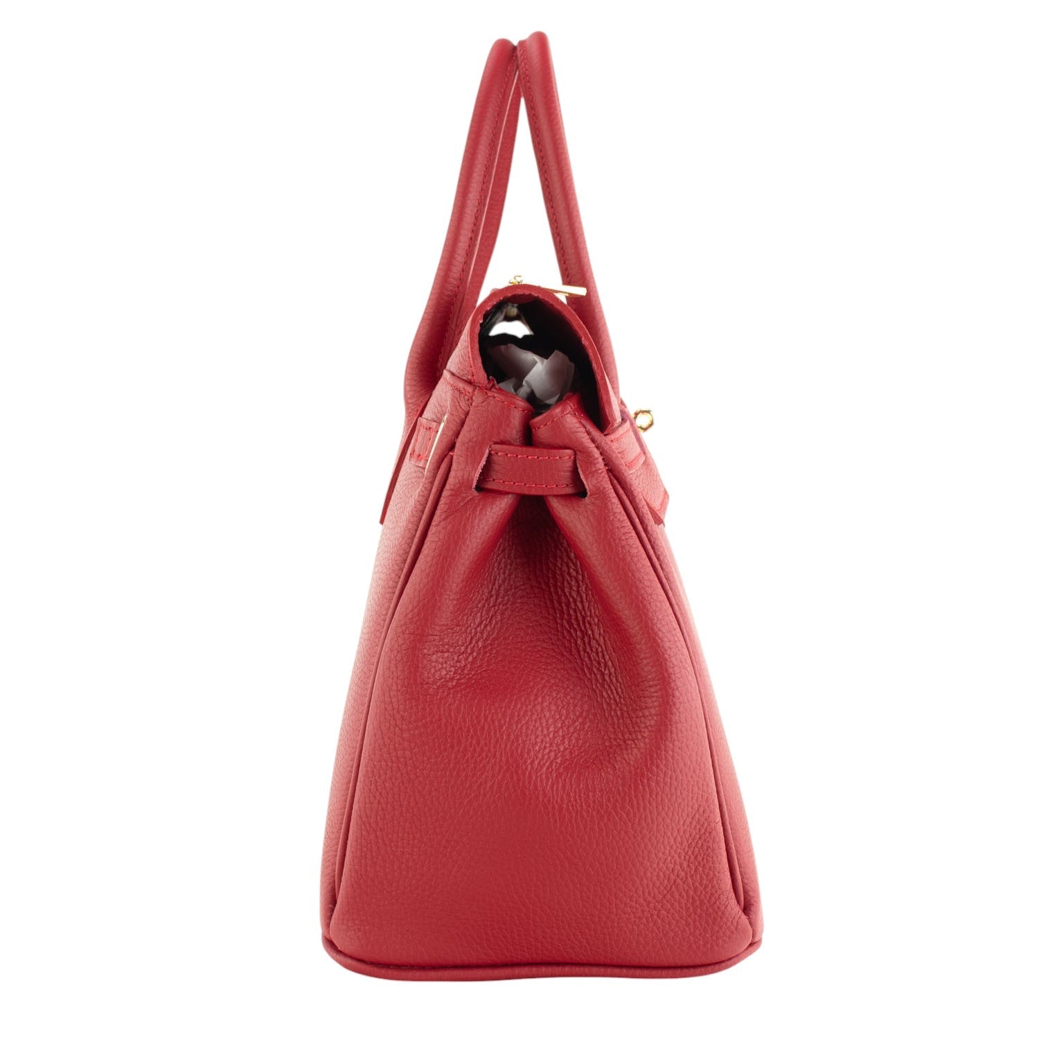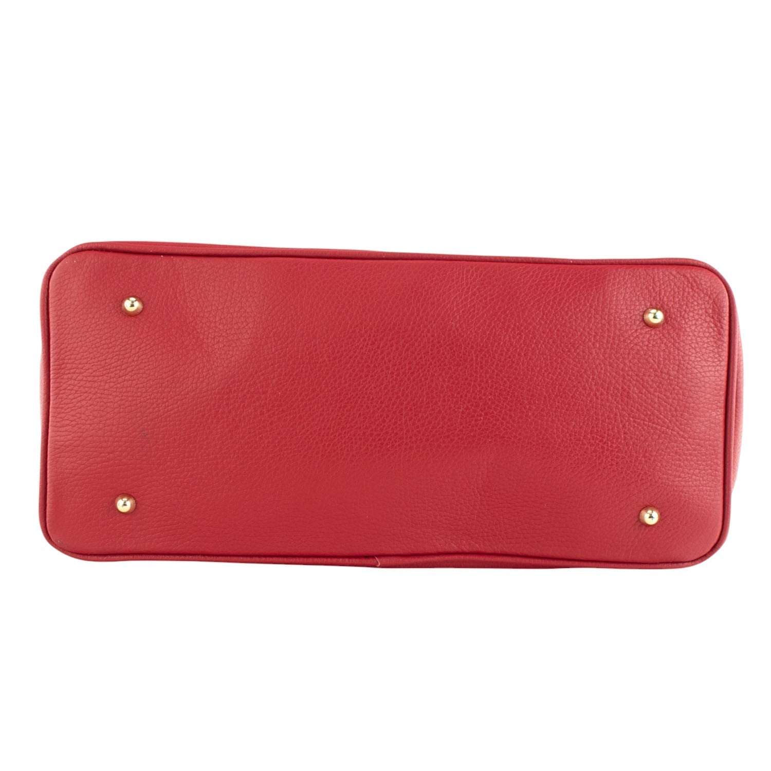 Un bolso muy original para lucir a diario, realizado en Piel 100% genuina vacuno italiana, este bolso está hecho en Italia con una excelente manufactura y calidad, tiene un compartimento interior amplio y cierre de broche además de un cierre superior con cremallera para facilitar el acceso al compartimento principal. Dispone de cómodas asas para llevar de mano.